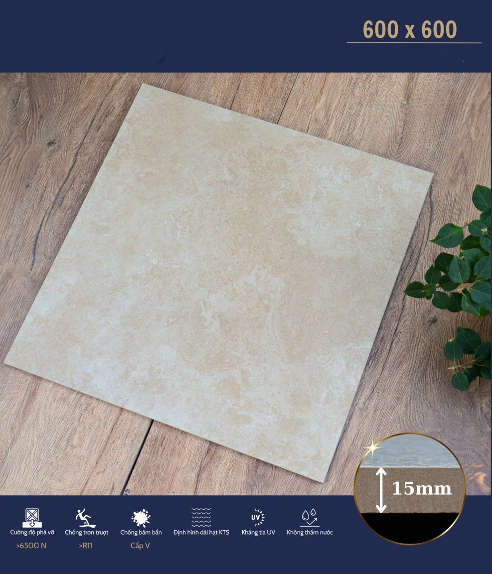 ĐẶC BIỆT VỚI ĐỘ DÀY GẠCH TỚI 15mm, TẠO NÊN SỰ RẮN CHẮC TUYỆT ĐỐI CHO VIÊN GẠCH : Chiều dày gạch lớn thường cho thấy chỉ số chống mài mòn và ma sát cao hơn. Gia chủ có thể di chuyển đồ đạc, nội thất trên bề mặt ốp lát mà không ngại trầy xước gây mất thẩm mỹ thậm chí hư hỏng