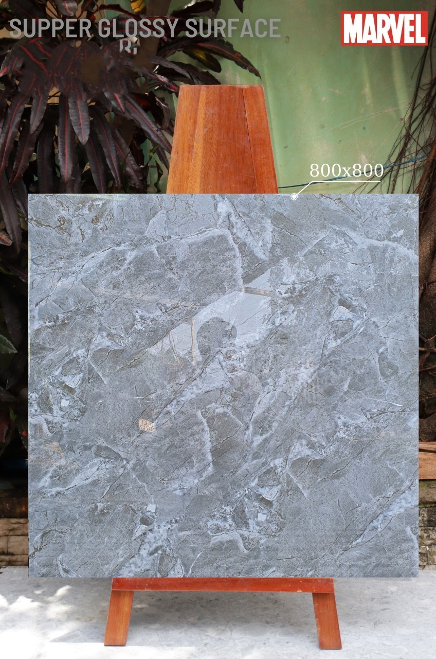 GẠCH LÁT NỀN 80X80 (4)3 XÁM VÂN ĐÁ BÓNG KÍNH CAO CẤP