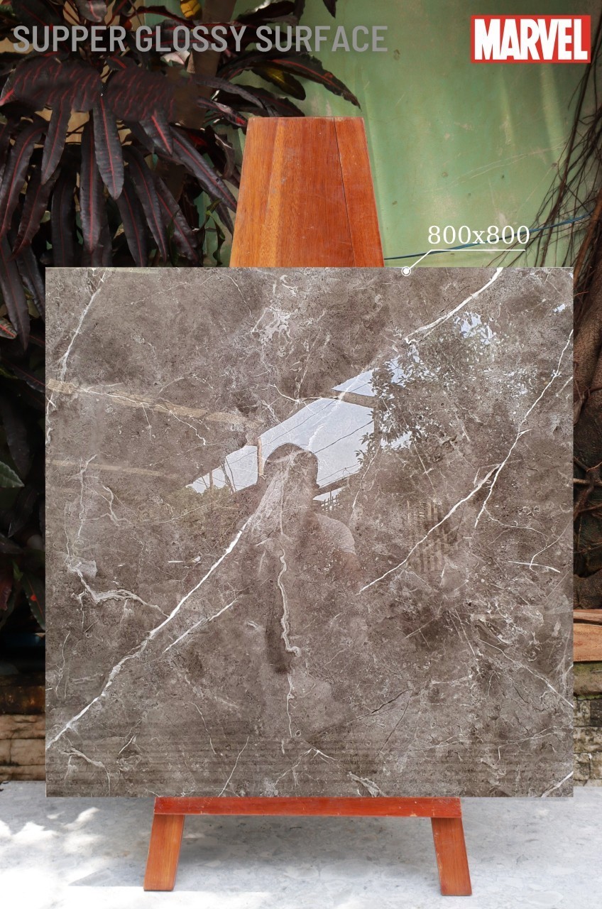 GẠCH LÁT NỀN 80X80 (4)7 NÂU VÂN ĐÁ, BÓNG KÍNH CAO CẤP