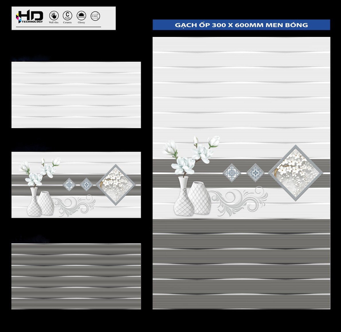 Gạch ốp tường 30x60cm men bóng (Glossy). Tiên phong trong công nghệ 4.0 - Công nghệ AQUA CERAMIC
