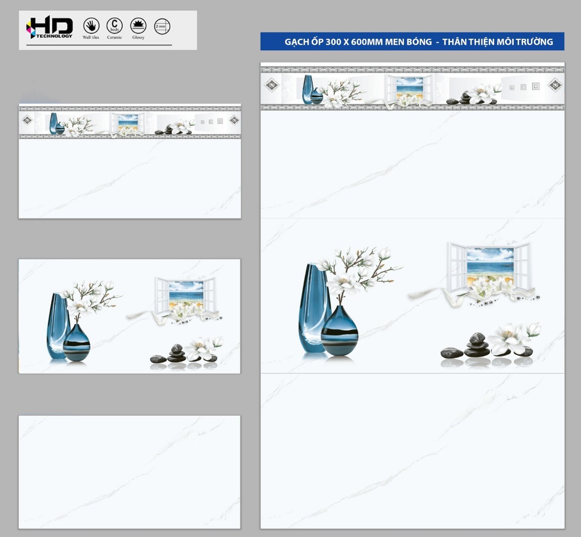 Gạch ốp tường 30x60cm men bóng (Glossy). Tiên phong trong công nghệ 4.0 - Công nghệ AQUA CERAMIC