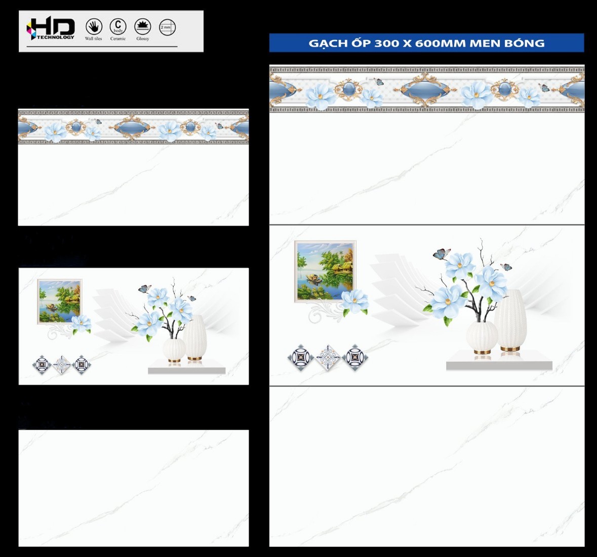 Gạch ốp tường 30x60cm men bóng (Glossy). Tiên phong trong công nghệ 4.0 - Công nghệ AQUA CERAMIC
