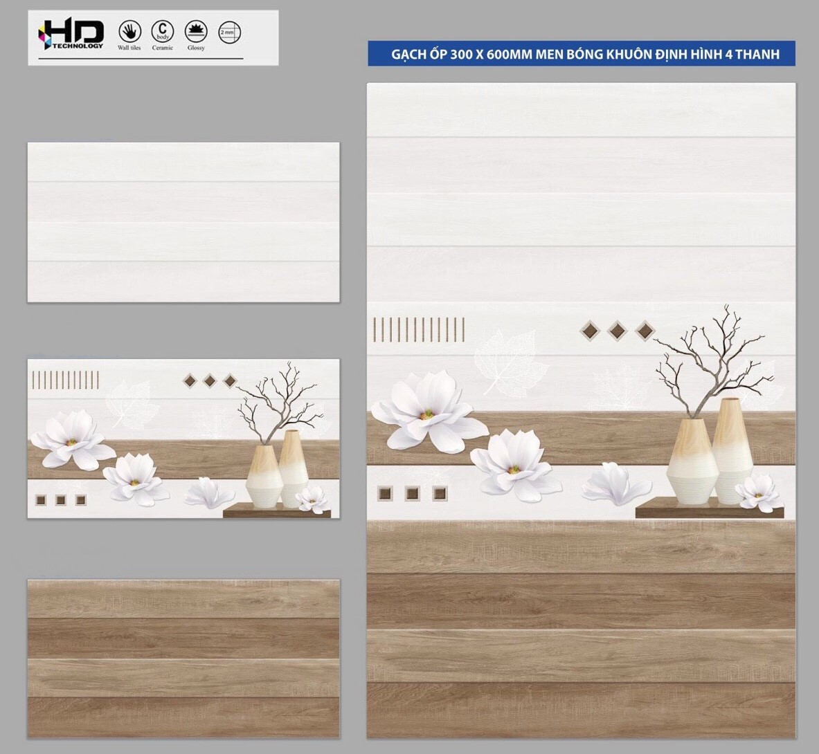 Gạch ốp tường 30x60cm men bóng (Glossy). Tiên phong trong công nghệ 4.0 - Công nghệ AQUA CERAMIC