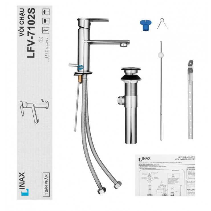 - Vòi lavabo INAX LFV-7102S nóng lạnh dùng cho chậu 1 lỗ (FC) đến từ thương hiệu thiết bị vệ sinh INAX